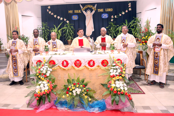 The beautifully decked hall, angelic choir and special prayers made the Eucharistic celebration meaningful an awe-inspiring. Followed by the Holy Mass was the time for special greeting, felicitation, cutting of Jubilee cake and sumptuous meals.