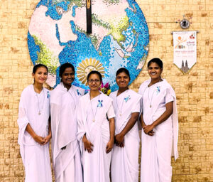 On 22nd August, there was a meaningful and inspiringprayer service to initiate the Candidates into the first step of our religious life. In preparation to receive the medals, we had three days of retreat conducted by Fr. Santa, OFM Cap. We were happy to have the presence of Sr. Mary Chetana for the occasion. We had the Holy Mass at 11.30 a.m. celebrated by Fr. Santa OFM. At the end of the Mass, the Priest blessed the medals and Sr. Mary Chetana handed them over to the Candidates and officially welcomed us to Notre Dame Family. We had the joy of having our neighbouring ND Communities enjoying the celebration with us. It was a memorable day for the Second Year Candidates. 2021 is a blessing for our Formation House as we welcomed nine new candidates despite the present pandemic condition. We are overjoyed to have the girls from four different states: Tamil Nadu, Karnataka, Punjab and Odisha.