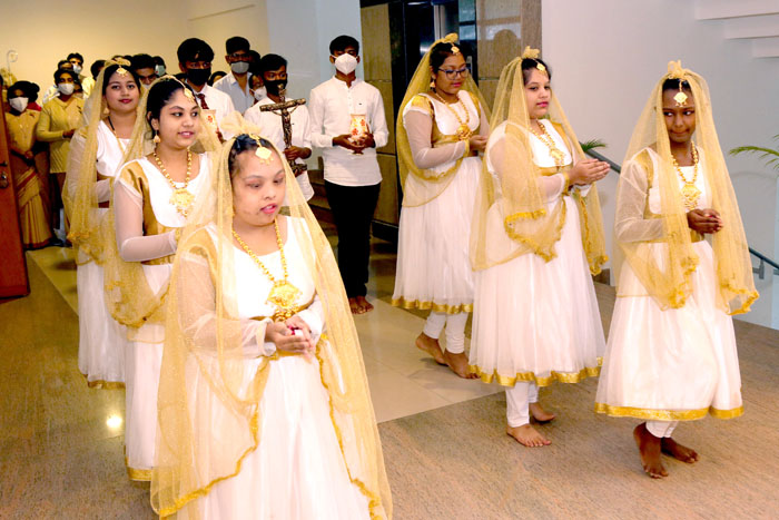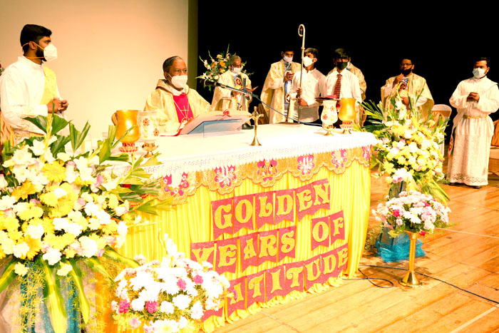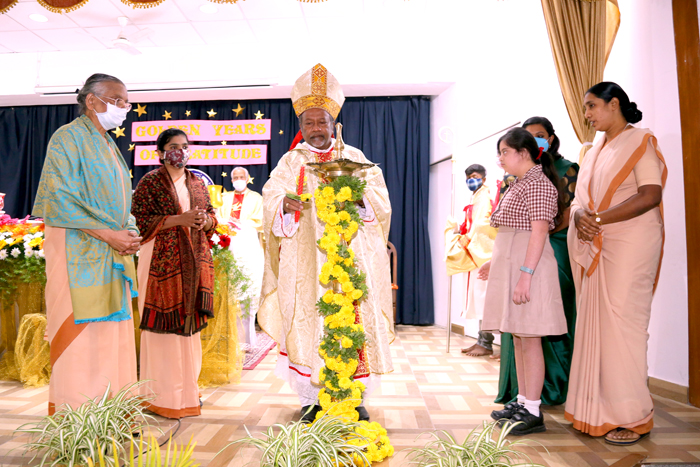 Appreciating the past, celebrating the present and inspiring the future the Golden Jubilee Closing Ceremony was meticulously organized by the Principal, Staff and Students of Sophia Opportunity School on February 2nd, 2022 with the Eucharistic Celebration, the Chief Celebrant being His Excellency Most Reverend Archbishop Dr. Peter Machado and Concelebrated by 12 other Priests. Keeping in mind the COVID Protocol, the crowd was restricted. The past Principals, Former Sisters Staff, Benefactors, and a few staff representatives from Sophia High School and a few parents from the Special School were present along with their children.